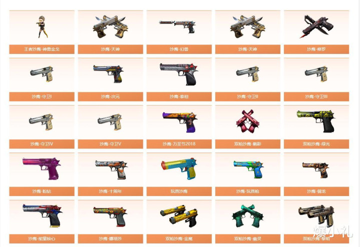 当然,还有策划的功劳,这些年,策划显然是知道玩家需要什么的,于是,各种出沙漠之鹰的各种皮肤枪,光沙鹰系列的武器,策划居然出了足足45把,请注意,这还只是沙鹰系列,我能找得到得,不包括那些变种的名字,要是加进去的话,起码有80把以上,也因为出了很多武器,让这把武器的地位也是节节攀升的。
