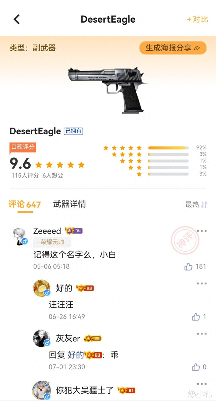 我打开了穿越火线的武器库找到这把武器时,发现这把武器的口碑评分居然高达9.6分,并且五星好评率也多达92%,什么概念?目前手枪里面,这把武器的评分居然是站在前列的,甚至隔壁一直被大吹特吹的COP,人家口碑都远不及小白这把武器,足以说明这把武器的地位有多高了,可为什么这把武器口碑那么好呢?